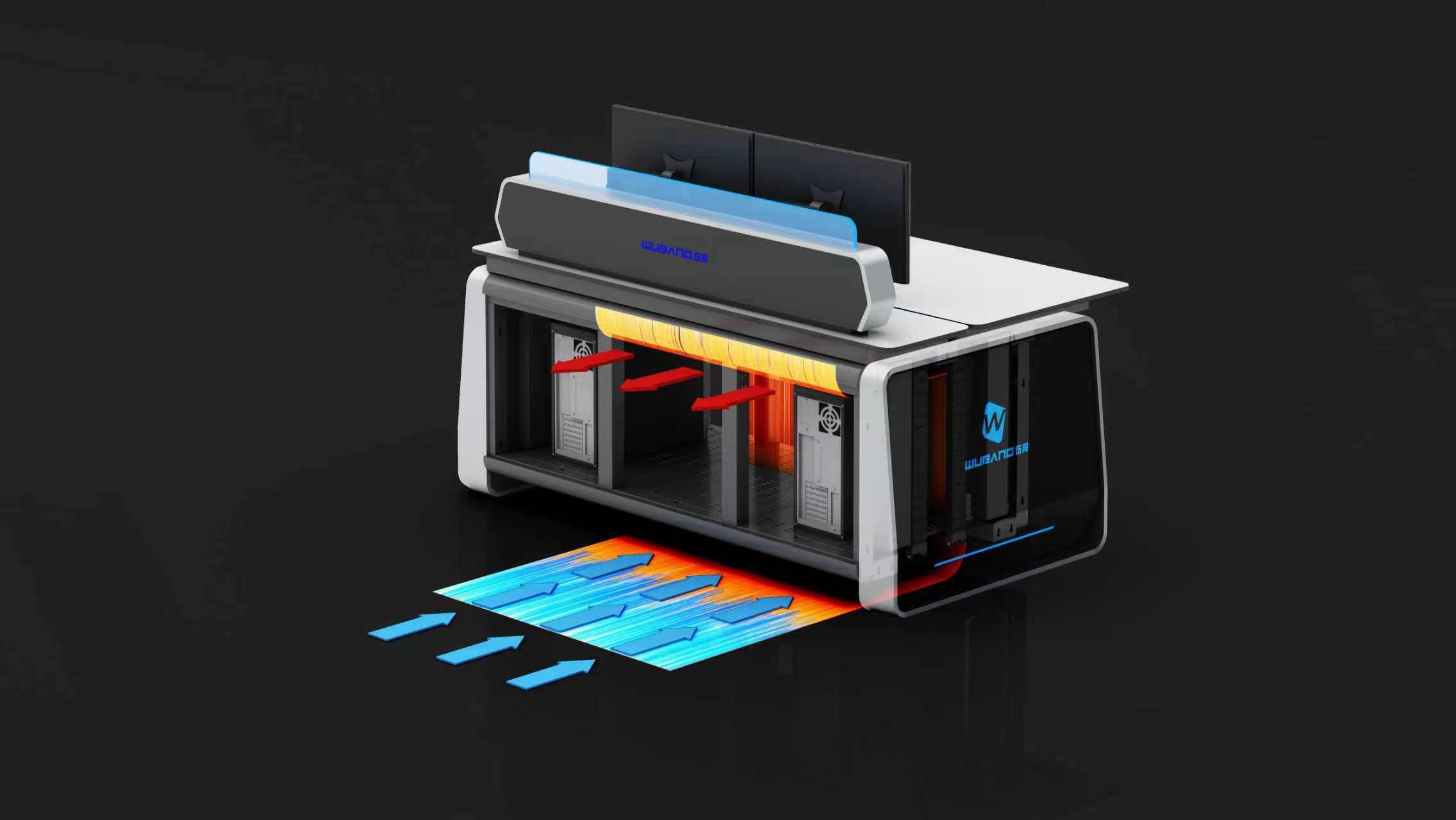 在指挥中心、电力调度室或数据监控中心,控制台内部往往集成着多台高性能工作站、服务器以及复杂的音视频分配器。这些设备在24/7不间断运行过程中,会产生巨大的热量。传统的控制台设计往往只注重外观,忽略了内部空间的空气流动,导致热量积聚,进而引发硬件性能降频、系统死机甚至设备损毁。伍邦(WuBang)深刻认识到,控制台的散热效率直接关系到指挥系统运行的连续性。